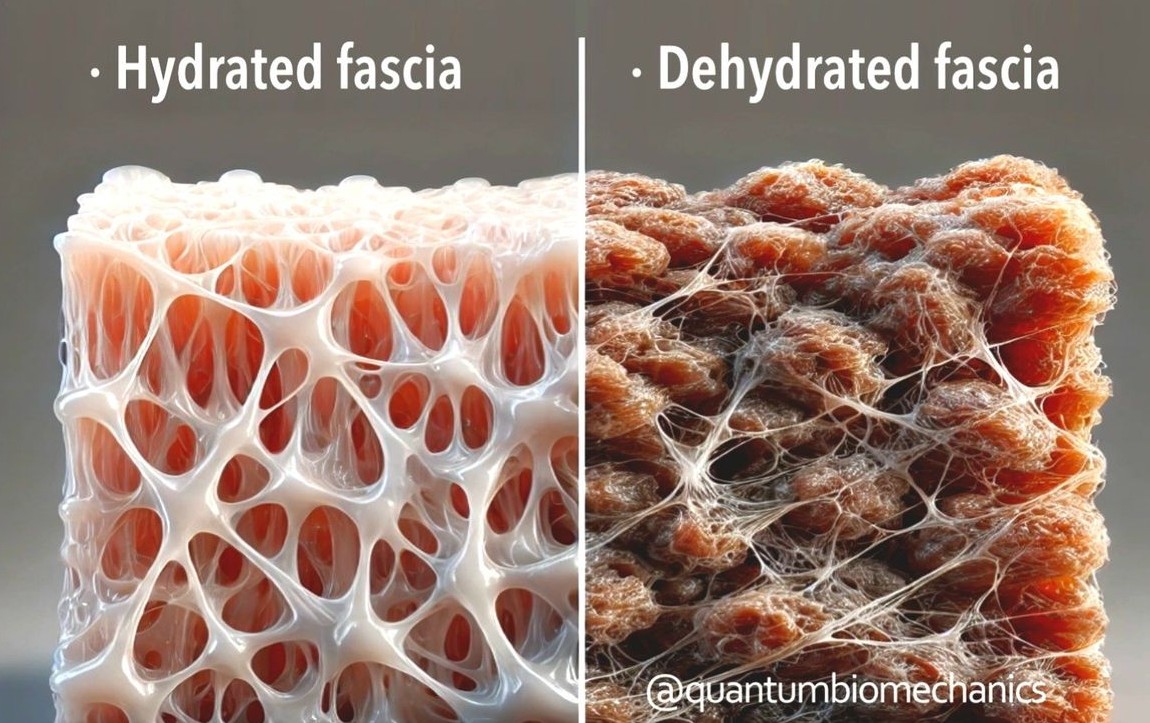 Onder invloed van te veel druk op het bindweefsel gebeurt dit. Daarin speelt de zwaartekracht een rol en dat maakt dat het eigenlijk gewoon is dat je bindweefsel indroogt raakt gedurende de dag en zolang je voldoende afwisselend beweegt is dat geen probleem. Als je bijvoorbeeld zit op de billen geef je eigenlijk druk op het bindweefsel daar waardoor het geplet raakt en begint in te drogen. Maar zodra je weer opstaat en even gaat lopen veert dat weefsel weer terug.